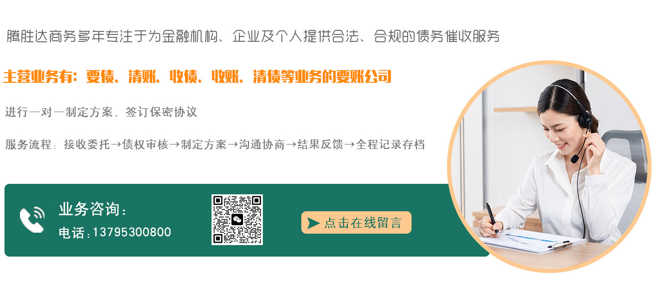 腾胜达商务多年专注于为金融机构、企业及个人提供合法、合规的债务催收服务,通过专门流程帮助客户搞效解决债权问题,主营业务有:要债、清账、收债、收账、清债等业务的要账公司,我们有独立的要债团队, 不成功不收费。